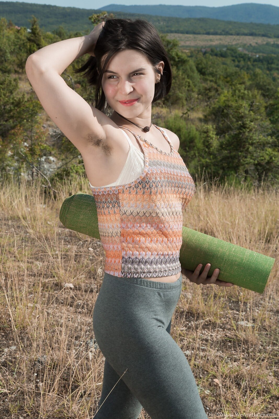 Short-haired teenager takes off her yoga pants and the rest of her outfit to do some sick moves on the mat while completely naked. Not only this one is hot, but it's also scenic. Enjoy her masturbation session.